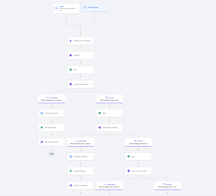 • Follow-up Automático: Envie mensagens-modelo ou cadências automáticas para cada etapa do funil.