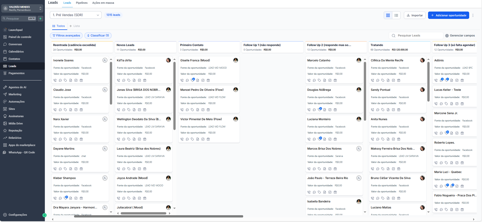 Visibilidade Cirúrgica: Acompanhe a produtividade individual, dias sem atualização do lead e o histórico de movimentação para garantir que nenhuma oportunidade esfrie.